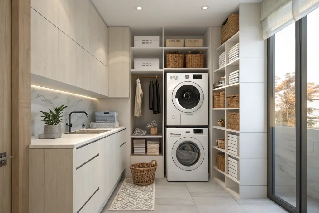 Stacked laundry centers combine a washer and dryer in one tall unit. You save floor space and get a matched set that works together. These units fit well in closets or small laundry rooms. You don’t need to worry about finding separate machines that match.