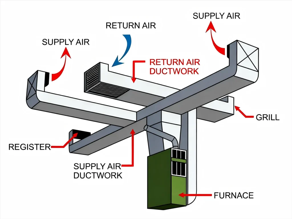 The return duct, by contrast, is more like a highway. It is a pathway of sheet metal or flexible tubing that carries air from different rooms back toward the return plenum. Its sole purpose is transportation, not distribution. Without ducts, the plenum would have no way to deliver or collect air from individual rooms.